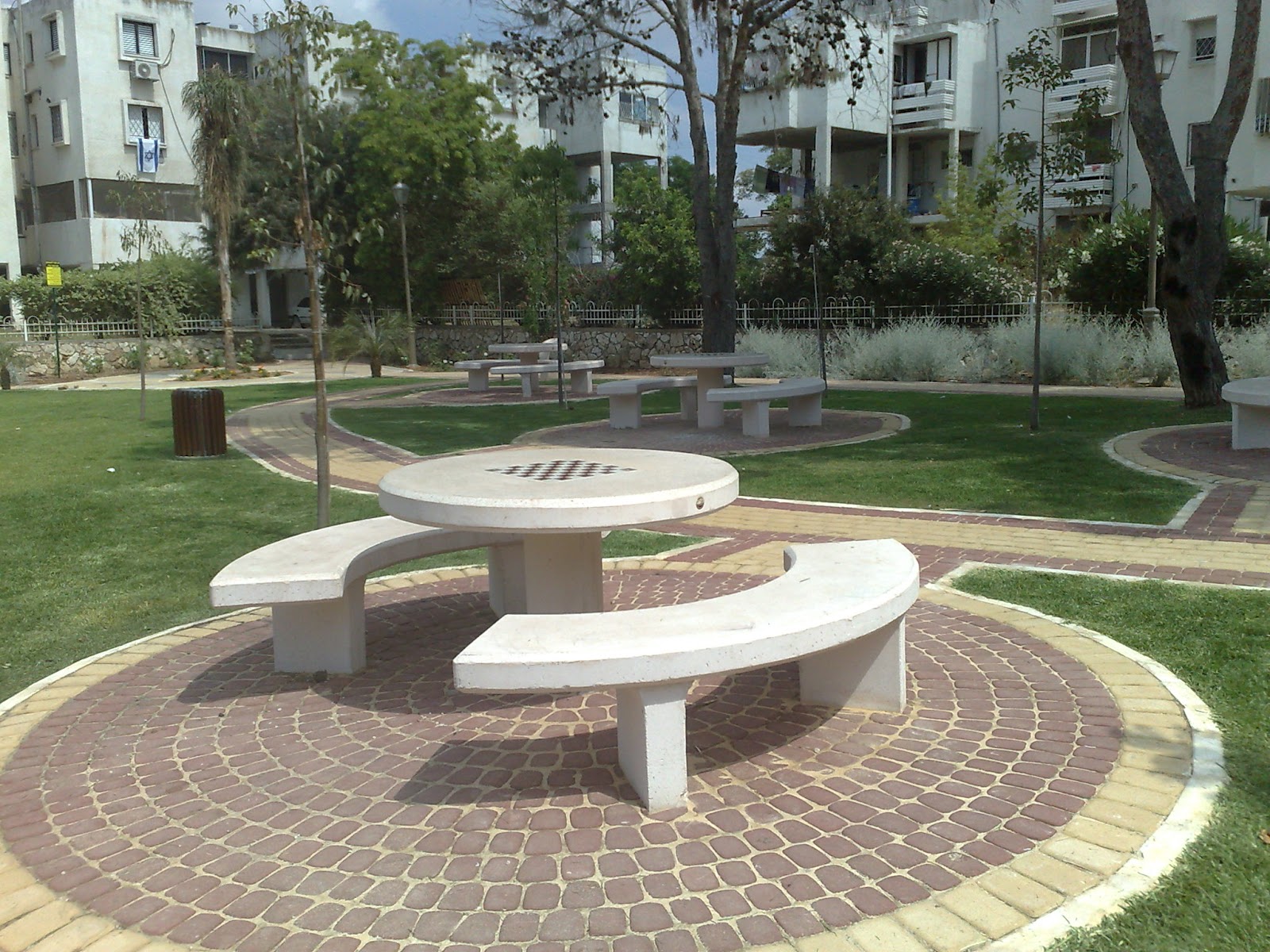 City grid tables are often paired with two showing the same terrain, one intact and the other in ruins. These are convenient for a variety of wargames, and children like them for playing with toy soldiers and other figures. Flat-topped tables with painted grids are most common. However, textures ones also exist, in which the tops are typically cast in concrete or bronze. Closely related is a "tile puzzle" type gaming surface showing a road, path, or other terrain. Tiles are just too valuable to leave loose, even if they cost money to rent. The T-American solution, visible in some better parks with a lot of gamers, is to create a table with sliding tiles locked into its top, similar to a tile puzzle game. This allows the terrain to be rearranged, thus maintaining interest. The most popular way of raising money for maintenance is to include a coin slot that makes the tiles mobile. You can play free on whatever configuration is already there, or pay to change it. Some people just like to solve it as a puzzle! Naturescape tables are useful for gaming and also wilderness talks. They are most often made by using green and brown (for drylands) or green and blue (for wetlands) paint on a flat tabletop. Occasionally they are cast with hills or ravines using a durable material such as concrete or bronze.